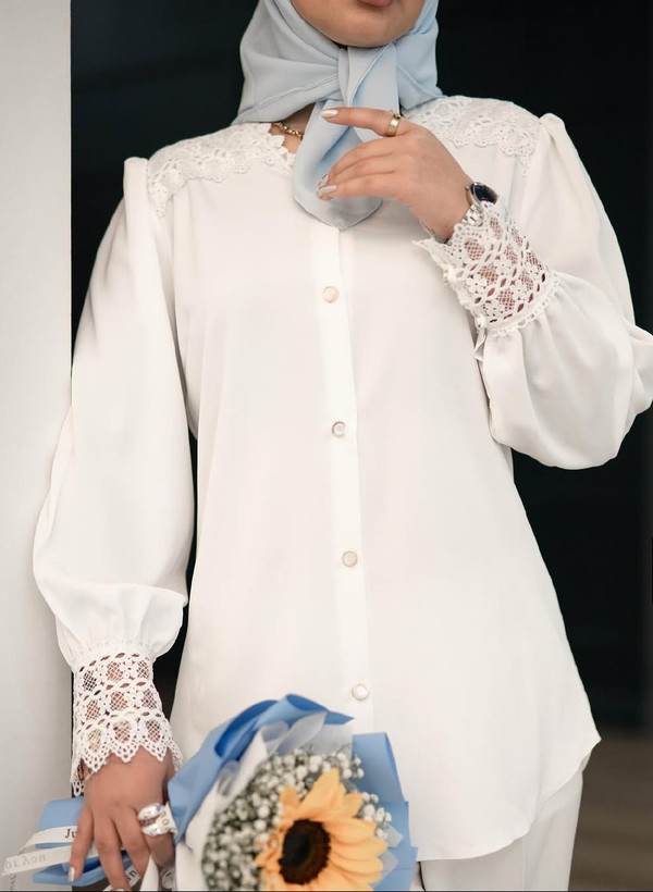 سایز ۲: شومیز رنگ سفید دور سینه ۱۱۰ قد ۷۵