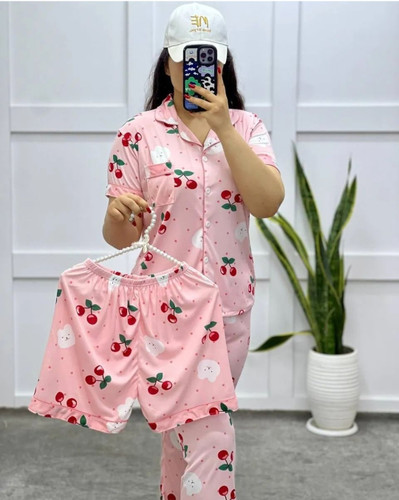 ست سه تیکه ساتن (تاپ +شورتک+اسکرانچی)